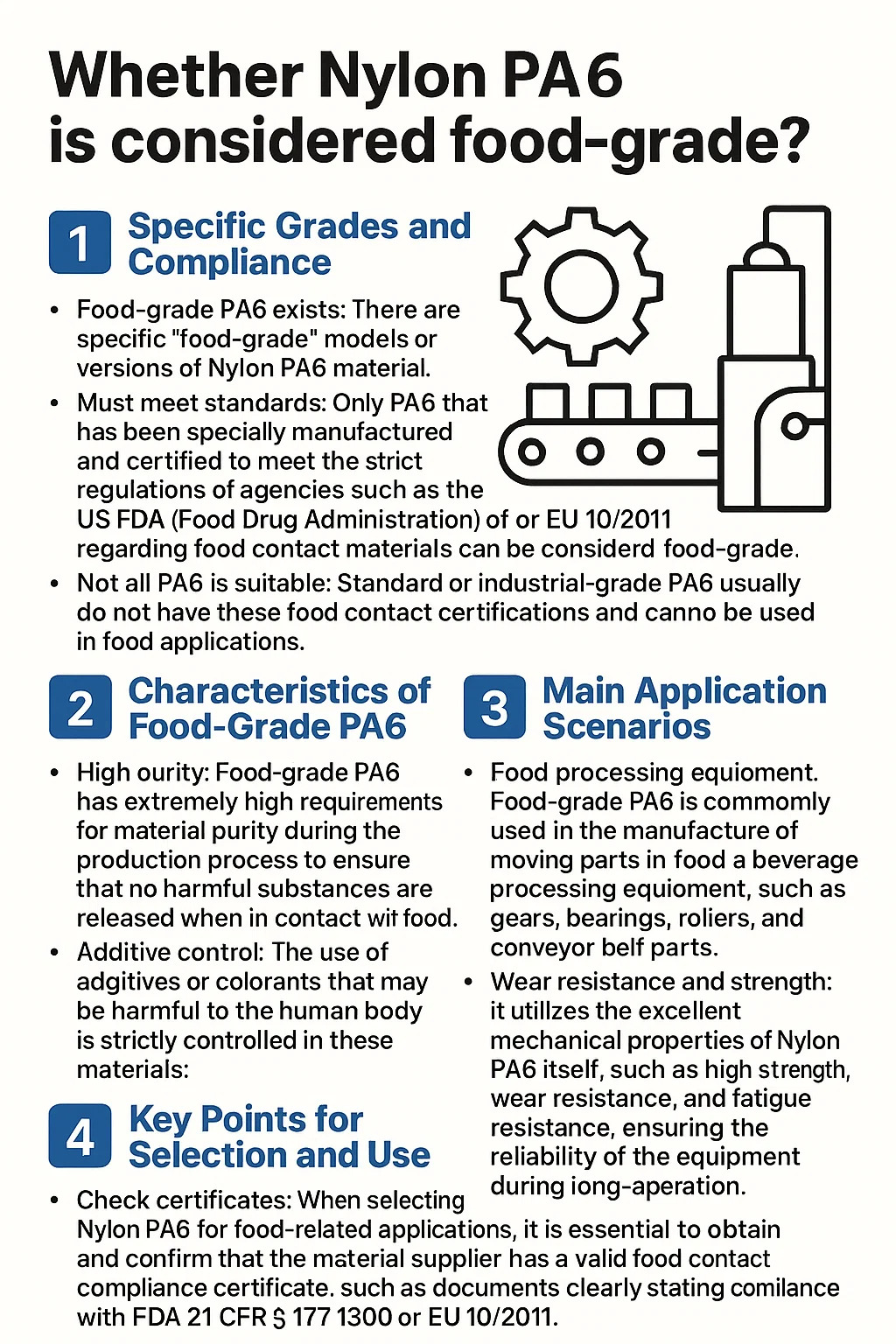 Of Nylon PA6 als food-grade wordt beschouwd, kan worden bepaald aan de hand van de volgende aspecten: